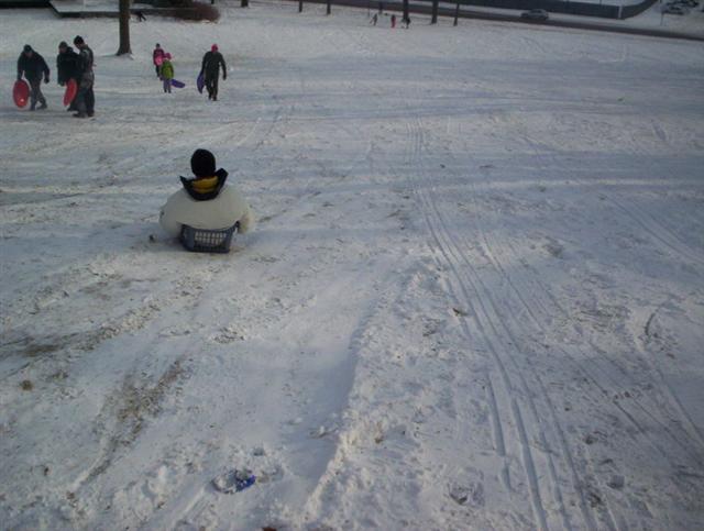 Sledding on Slayter Hill